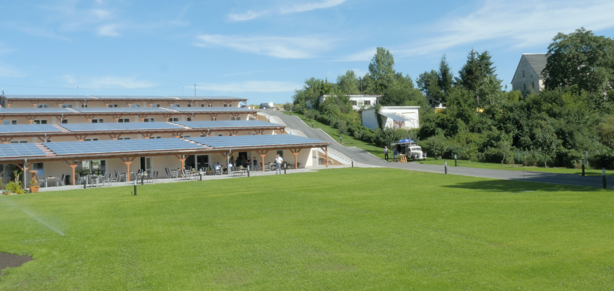Übrigens: Mit Photovoltaik-Anlagen auf den Dächern und der Wärmeerzeugung durch eine Hackschnitzelheizungsanlage wird die Energieversorgung der Ferienwohnungen zeitgemäß und