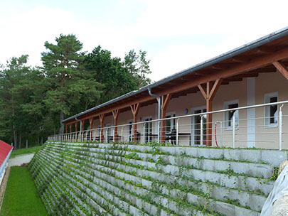 Ein Parkplatz, ein gemeinschaftlich nutzbarer Badestrand mit Liegewiese / Bootssteg und ein Veranstaltungsraum sind auch vorhanden.