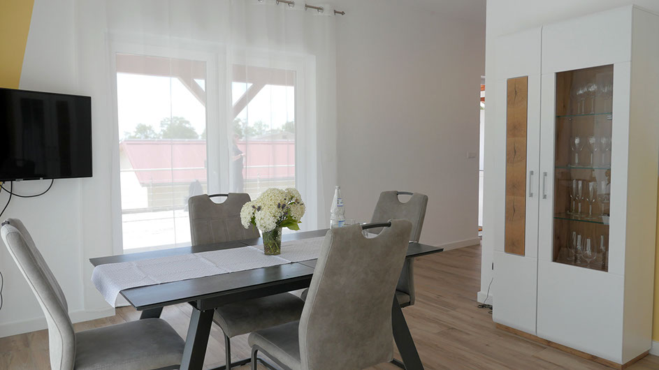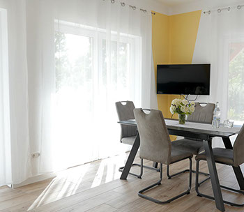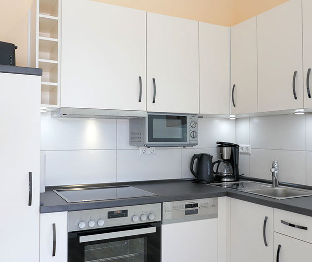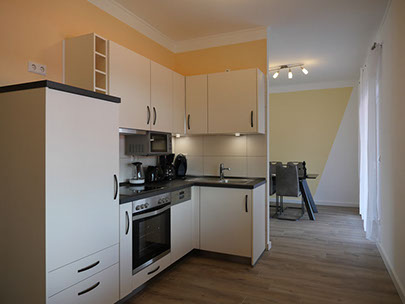 Unsere Ferienwohnungen sind modern und mit allem Komfort eingerichtet. Sie haben getrennte Wohn- Schlafbereiche - eine Aufbettung für 1 Person ist möglich. Eine komplett mit Herd, Kühlschrank Geschirrspüler, Mikrowelle und Kaffeemaschine eingerichtete Küche ermöglicht die Selbstversorgung.