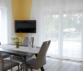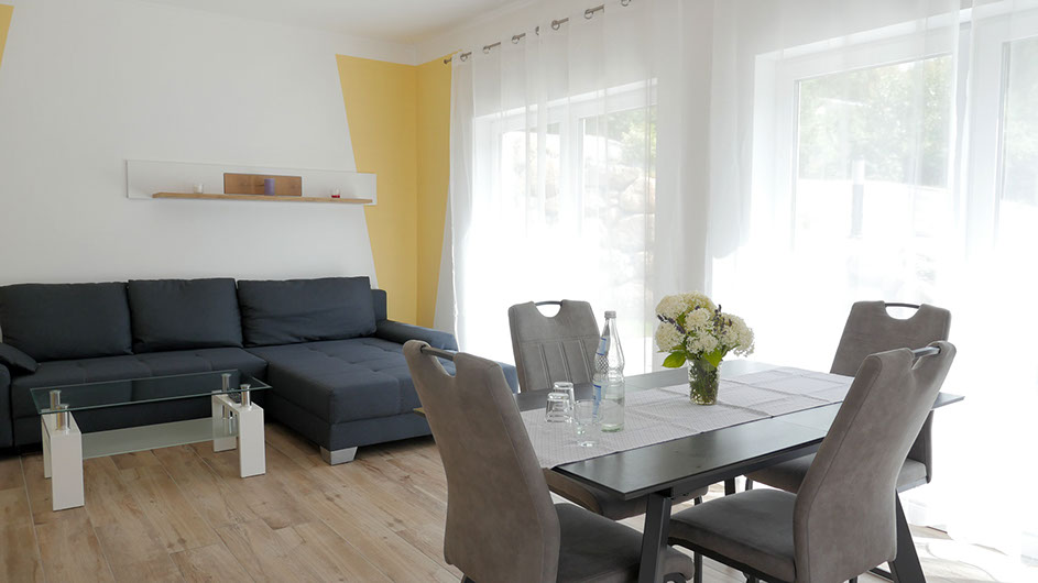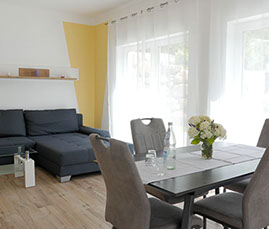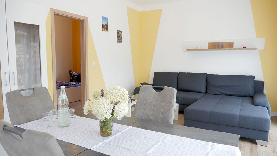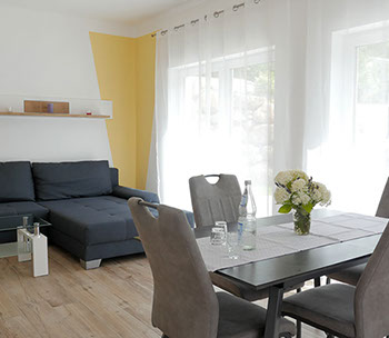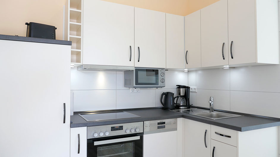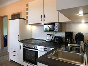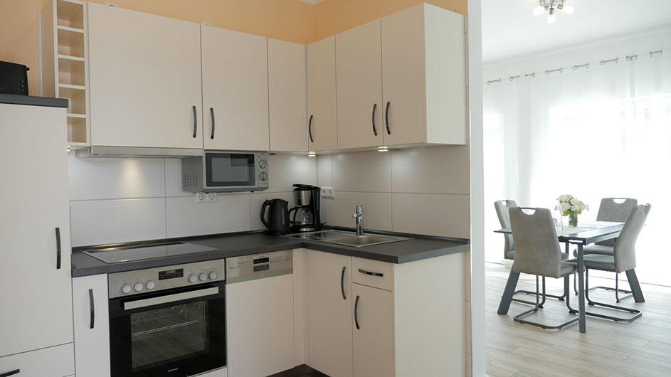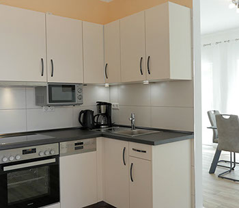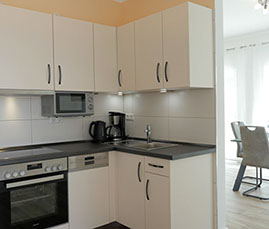 Unsere Ferienwohnungen sind modern und mit allem Komfort eingerichtet. Sie haben getrennte Wohn- Schlafbereiche - eine Aufbettung für 1 Person ist möglich. Eine komplett mit Herd, Kühlschrank Geschirrspüler, Mikrowelle und Kaffeemaschine eingerichtete Küche ermöglicht die Selbstversorgung.