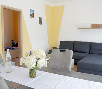 Aufpreis Haustier: 15 € / Tier, Aufpreis Aufbettung auf der ausziehbaren Couch: 15 € / Person